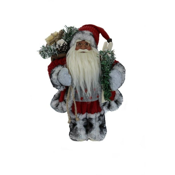 Lightahead 12 Inch Santa Claus Standing Red Grey Christmas Figurine Decoration Santa With Ski Walmart Com