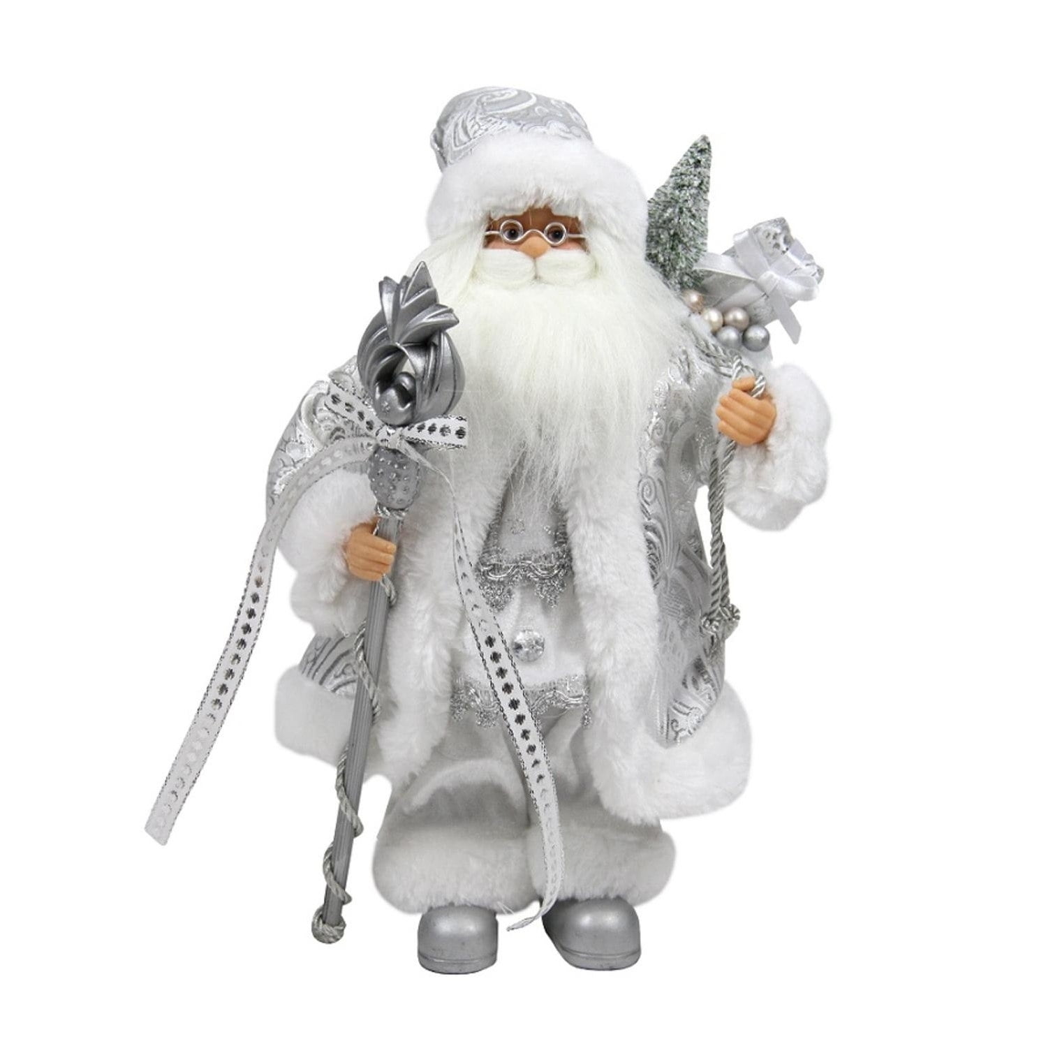 12 Elegant Standing Santa Claus Figure In Silver And White With Staff Walmart Com